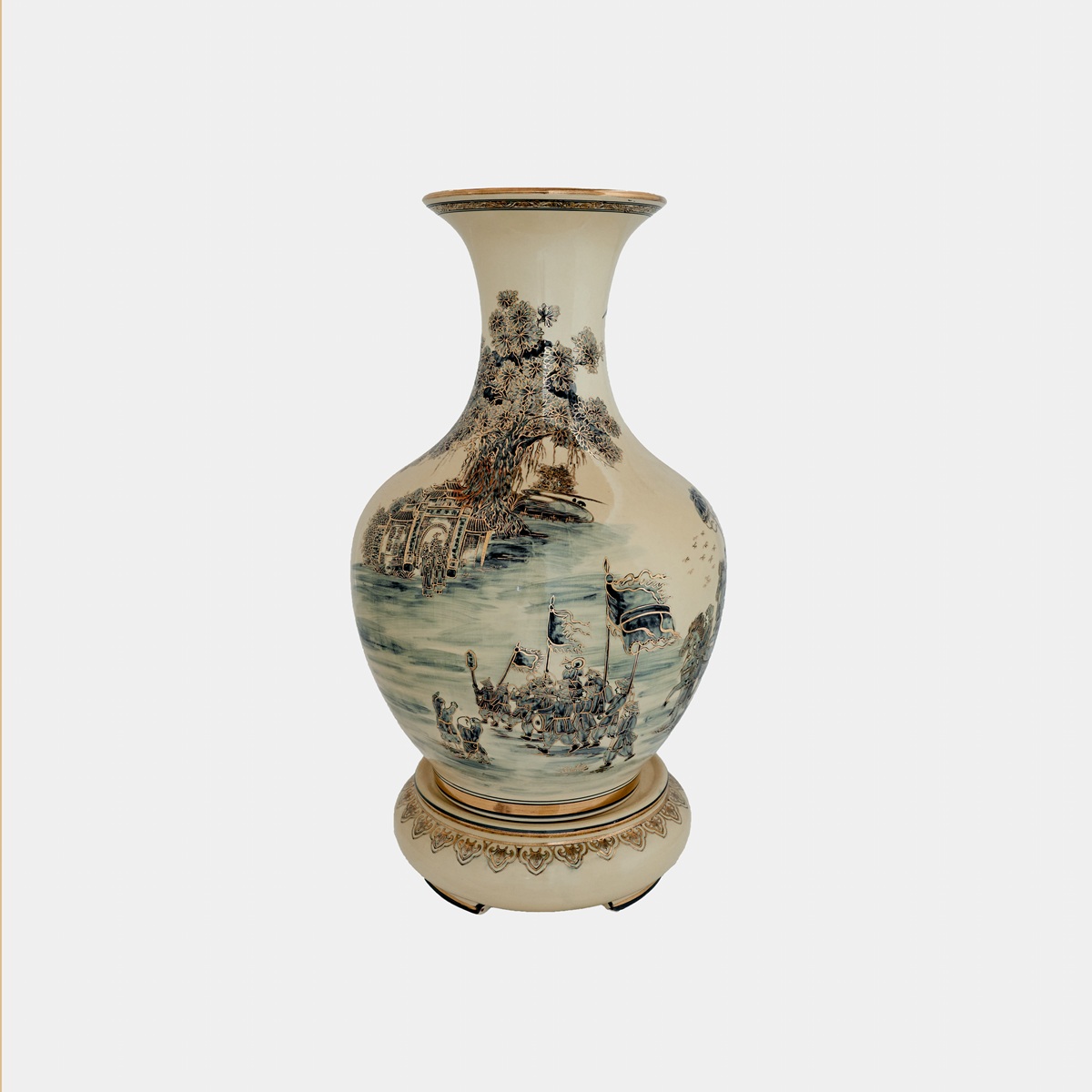 - Phần chân bình là họa tiết cánh Sen cách điệu, thể hiện cho văn hóa tín ngưỡng phồn thịnh của người Việt.