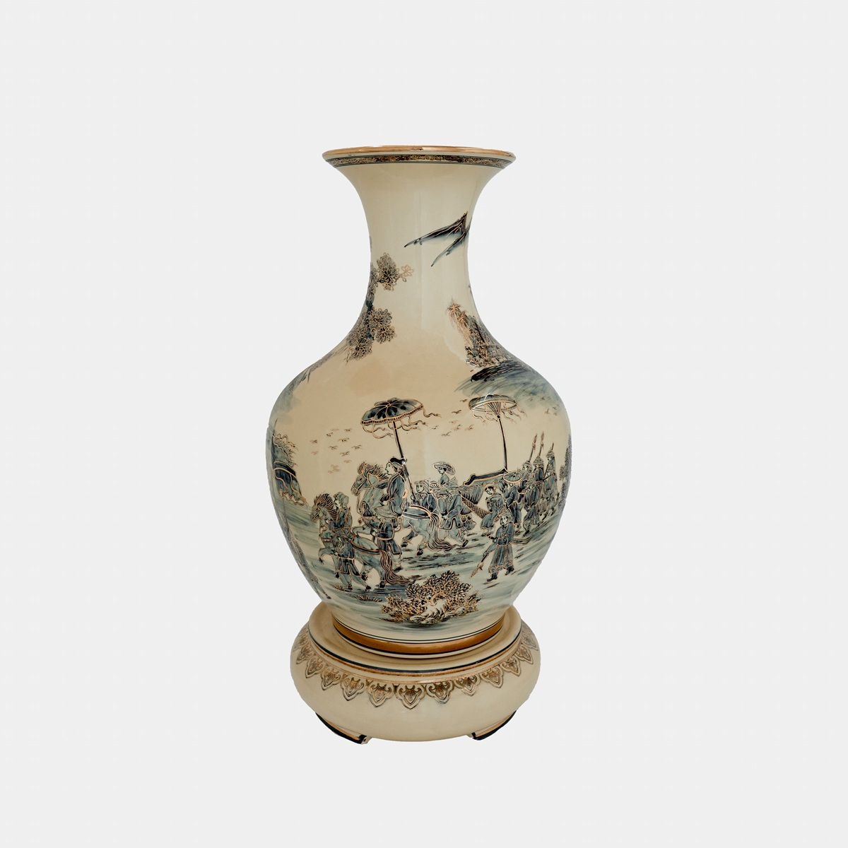 - Phần thân bình được trang trí hoa cúc đại đóa – thể hiện cho người đàn ông quang minh chính đại, người thành đạt trong xã hội. Bên cạnh đó là họa tiết hoa dây, như bóng dáng người phụ nữ luôn đồng hành trên con đường thành đạt của người đàn ông.